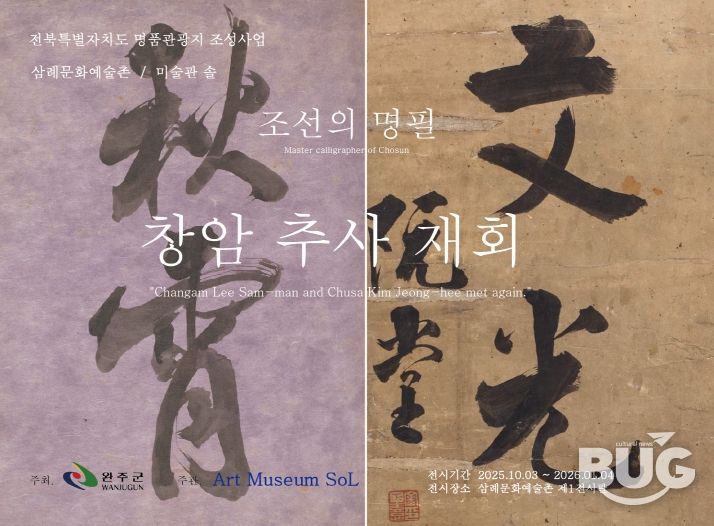 부울경문화뉴스 관리자 기자 | 완주군이 삼례문화예술촌 제1전시관에서 조선시대를 대표하는 명필 두 인물, 창암 이삼만(蒼巖 李三晩, 1770~1847)과 추사 김정희(秋史 金正喜, 1786~1856)의 예술세계를 한자리에서 만날 수 있는 특별전 ‘창암 추사 재회’가 성황리에 열리고 있다.