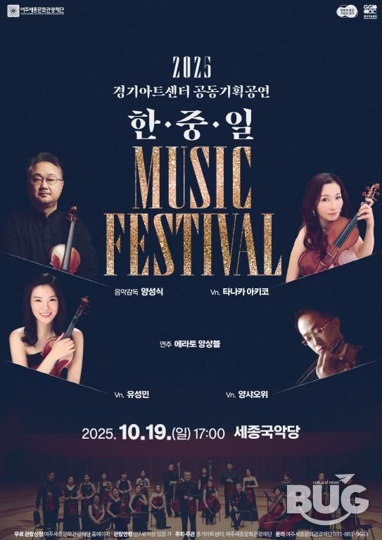 부울경문화뉴스 관리자 기자 | 여주세종문화관광재단이 오는 10월 19일, 경기아트센터와 공동기획으로 ‘한·중·일 뮤직 페스티벌’을 세종국악당에서 선보인다.