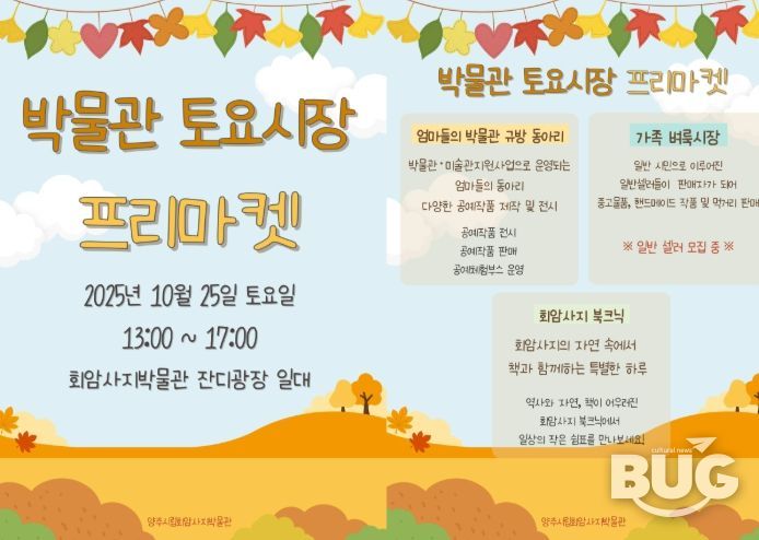 부울경문화뉴스 관리자 기자 | 양주시립회암사지박물관이 오는 25일 오후 1시부터 5시까지 가을을 맞아 “박물관 토요시장” 프리마켓을 운영한다.
