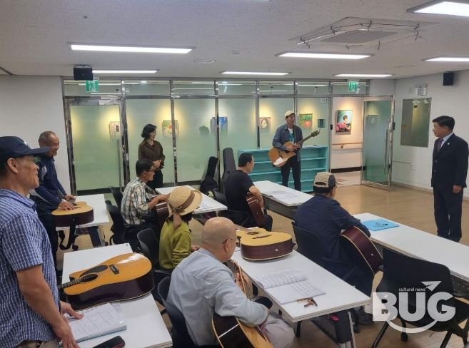 부울경문화뉴스 관리자 기자 | 고성군이 운영하는 고성군종합사회복지관 분관에서는 10월 17일 저녁, 야간노래교실과 통기타반 수강생들을 격려하기 위해 이상근 군수가 직접 현장을 방문했다.