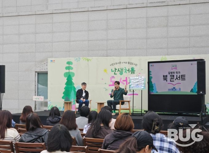 김 작가는 “인공지능 시대일수록 중요한 것은 내가 느낀 감정적 경험”이라 강조하며, 책과 인생, 그리고 독서의 의미를 깊이 있게 전했다. 잔디 위 야외무대에서 시민들은 자연과 함께 책이 주는 위로와 통찰을 느끼며, ‘책을 읽는 이유’를 새롭게 사유하는 시간을 가졌다.