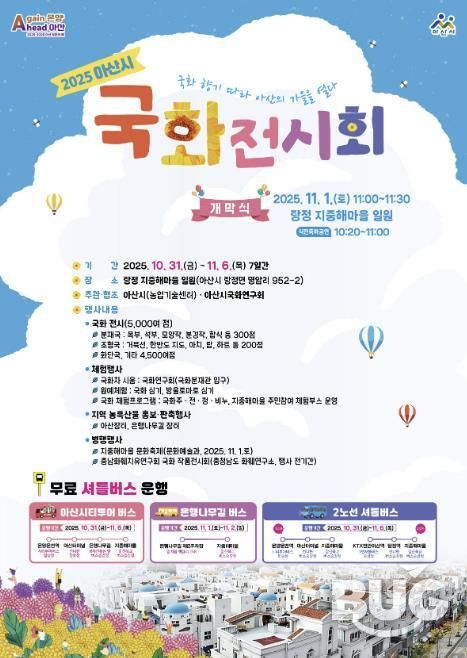 부울경문화뉴스 관리자 기자 | 아산시는 깊어가는 가을 정취를 만끽할 수 있는 ‘2025년 아산시 국화전시회’를 오는 10월 31일부터 11월 6일까지 7일간 탕정면 지중해마을 일원에서 개최한다고 밝혔다.