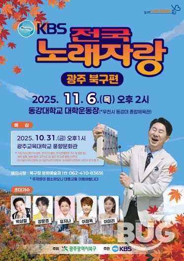 21일 북구에 따르면 오는 11월 6일 오후 2시부터 ‘KBS 전국노래자랑 광주 북구편’ 본선 녹화가 동강대학교 운동장에서 진행된다.