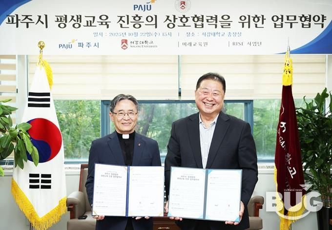 부울경문화뉴스 관리자 기자 | 파주시는 지난 22일, 서강대학교 본관에서 김경일 파주시장과 서강대학교 심종혁 총장 등이 참석한 가운데 서강대학교와 2026년 '일생일대 프로젝트'를 공동 기획·운영하기 위한 평생교육 진흥 업무협약을 체결했다고 밝혔다.