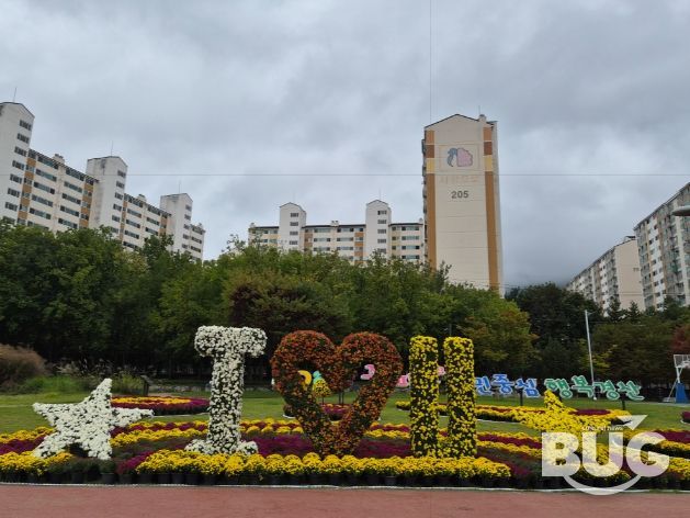 이번 국화전시는 옥곡동 생활 환경 숲과 맨발 걷기 산책로 인근 시정 구호 화단 약 800㎡에 3,300여 본의 국화와 곰돌이, 고양이, ‘아이러브유’ 조형물 3점을 설치해 다채로운 볼거리를 제공한다.