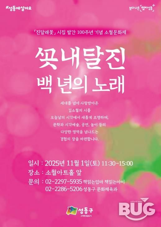 부울경문화뉴스 관리자 기자 | 서울 성동구는 김소월 시집 ‘진달래꽃’ 출간 100주년을 기념해 오는 11월 1일 ‘진달래꽃, 백년의 노래’를 주제로 ‘2025 소월문화제’를 개최한다고 밝혔다.