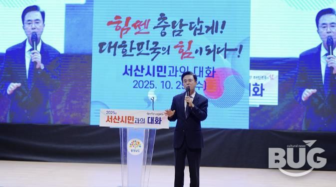 김태흠 충남도지사는 이날 이완섭 서산시장과 함께 시청 중회의실에서 언론인 간담회를 진행한 후 문화회관에서 시민 6백여 명과 지역 발전 방안을 공유했다.