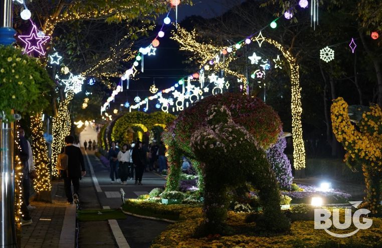 공룡, 꽃 터널, 캐릭터 등 각양각색의 조형물을 활용한 4개의 테마존, 분재국화 전시장 등이 3만여점 다양한 국화로 물들고, 야간에는 LED 경관 조명으로 더욱 아름다워진다.