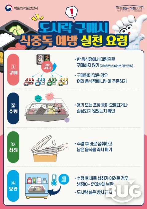 소비자가 도시락·포장음식을 구입할 때에는 가능한 해썹(HACCP) 인증받은 식품제조‧가공업소(도시락전문제조업체등)의 제품이나 위생 상태가 우수하다고 인정된 위생등급 지정 음식점을 이용하는 것이 바람직하다.