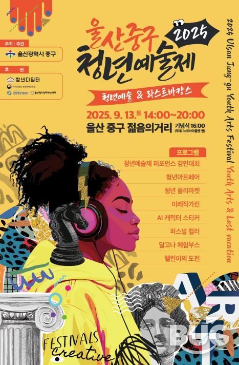 부울경문화뉴스 관리자 기자 | 울산 중구가 오는 9월 13일 오후 2시부터 8시까지 중구 성남동 젊음의거리 일원에서 ‘2025 울산 중구 청년예술제’를 개최한다.