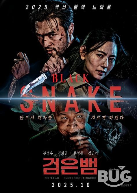 부울경문화뉴스 관리자 기자 | 하드보일드 액션 느와르 '검은뱀'이 오는 10월 극장 개봉 확정과 함께 강렬한 메인 포스터를 전격 공개했다.[감독 : 박도환 | 출연 : 부정우, 김화인, 문영동, 김민기, 기주봉 외 | 제작 : 케이스타 | 배급 : ㈜이놀미디어]