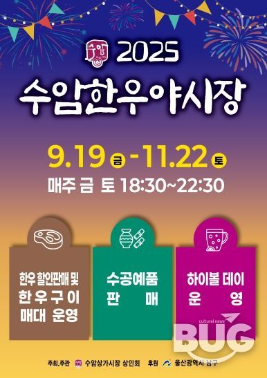 부울경문화뉴스 관리자 기자 | 울산 남구는 행정안전부 공식 지정 야시장인‘수암한우야시장’ 이 하반기 개장에 들어가 19일부터 11월 22일까지 매주 금·토 오후 6시 30분부터 10시 30분까지 총 16회 운영된다고 밝혔다.