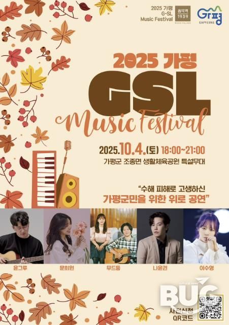 부울경문화뉴스 관리자 기자 | 가평군은 오는 10월 4일, 토요일 조종면 생활체육공원에서 ‘2025 가평 G-SL’ 뮤직페스티벌 공연을 개최한다. 올해 네 번째 G-SL 무대인 10월 뮤직페스티벌은 지난 여름 집중호우로 인한 피해로 지치고 고생한 군민들에게 위로와 희망의 메시지를 전하기 위해 조종생활체육공원 특설무대에서 열린다.