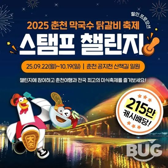 부울경문화뉴스 관리자 기자 | 춘천의 대표 미식 축제인 2025 춘천막국수닭갈비축제가 사전 운영 프로그램으로 선보인 ‘스탬프 챌린지’ 프로그램이 공개 하루 만에 참여자가 약 1만 명을 돌파하며 큰 호응을 얻고 있다.