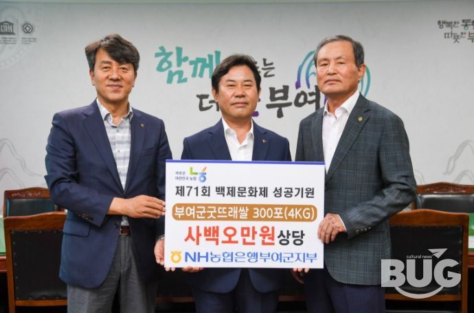 부울경문화뉴스 관리자 기자 | 부여군은 지난 9월 22일 군수실에서 제71회 백제문화제의 성공적인 개최를 기원하는 NH농협은행 부여군지부(지부장 류경환) 기부금 전달식을 진행했다.