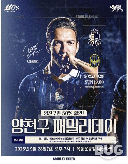 이날 인천유나이티드전은 양천구민에게 특별히 티켓 50% 할인 혜택이 제공되며, 현장 매표소에서 거주 확인 후 반값으로 즐길 수 있다.