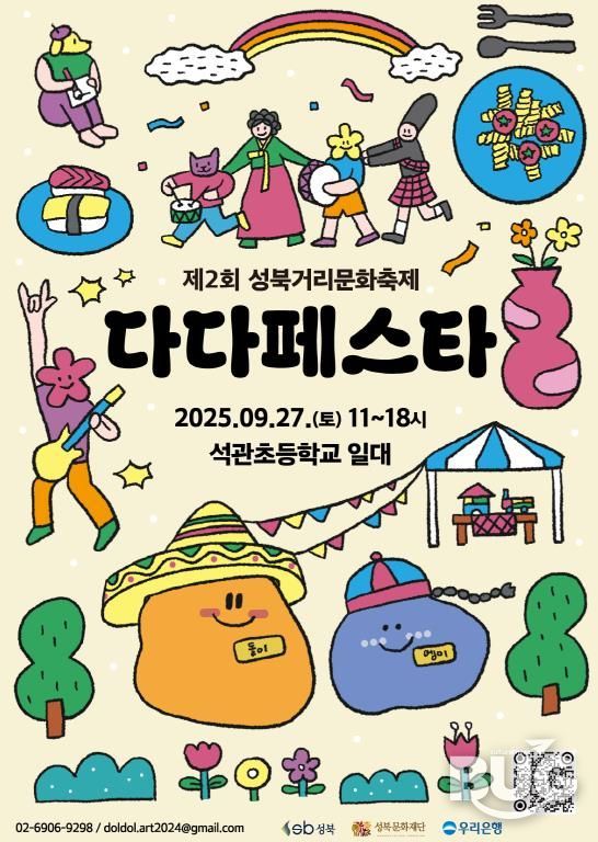 부울경문화뉴스 관리자 기자 | 서울 성북구가 오는 9월 27일 11시부터 18시까지 서울 석관초등학교 앞 도로와 운동장 일대에서 다문화와 청년이 주인공이 되는 ‘2025 성북거리문화축제 '다다페스타'’를 개최한다. '다다페스타'는 ‘다양한 사람들이 다 같이 즐기는 축제’라는 취지 아래 이주민과 다문화가정, 지역 청년과 대학생 등이 함께 어울리며 문화를 나누는 성북구 대표 거리문화축제다.