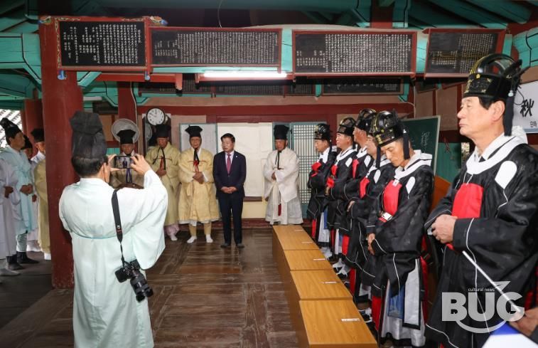 제례 봉행에는 △초헌관 이도경 삼도프레스 대표 △아헌관 이도생 고성향교 유림 △종헌관 한홍조 고성향교 유림이 참여해 관례에 따라 예복을 갖추고 성현들의 위패 앞에 헌작하며 공경을 표했다.
