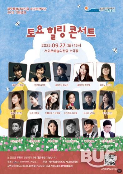 부울경문화뉴스 관리자 기자 | 서귀포시는 오는 9월 27일 15시 서귀포예술의전당 소극장에서 서귀포관악단의 기획공연 '토요힐링콘서트'를 진행한다.