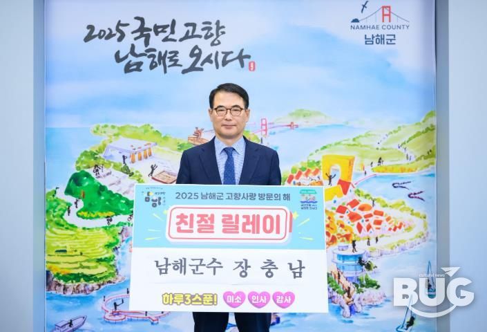 부울경문화뉴스 관리자 기자 | 남해군은 ‘2025년 고향사랑 방문의 해’를 맞이하여 ‘친절 남해’ 이미지를 제고하고 민관협력으로 범군민 친절 마인드를 함양하기 위해 군민 모두가 공감하고 참여하는 ‘친절릴레이 캠페인’을 시작한다고 밝혔다.