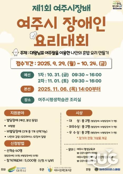 여주시 관계자는 “이번 대회는 장애인들이 여주쌀을 활용하여 자신만의 요리를 만드는 과정 속에서 성취감을 얻고 지역 농산물의 가치를 함께 공유할 수 있는 뜻깊은 시간이 될 것”이라며, “앞으로도 장애인의 평생학습 확대와 지역사회 통합을 위한 다양한 기회를 마련하겠다”고 말했다.