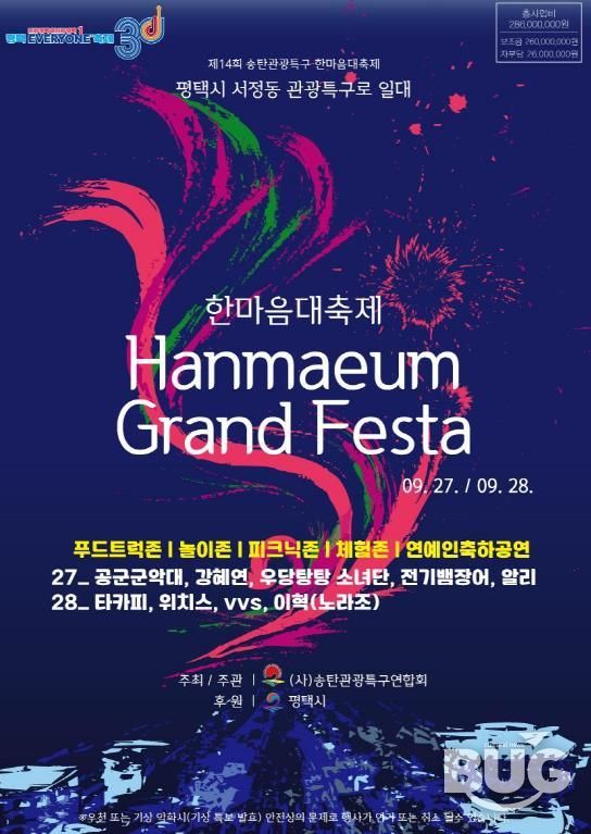 부울경문화뉴스 관리자 기자 | 사단법인 송탄관광특구연합회가 주최·주관하는 ‘제14회 송탄관광특구 한마음대축제’가 오는 27일(토)과 28일(일) 양일간 송탄출장소 앞 송탄관광특구 일대에서 성대하게 열린다.
