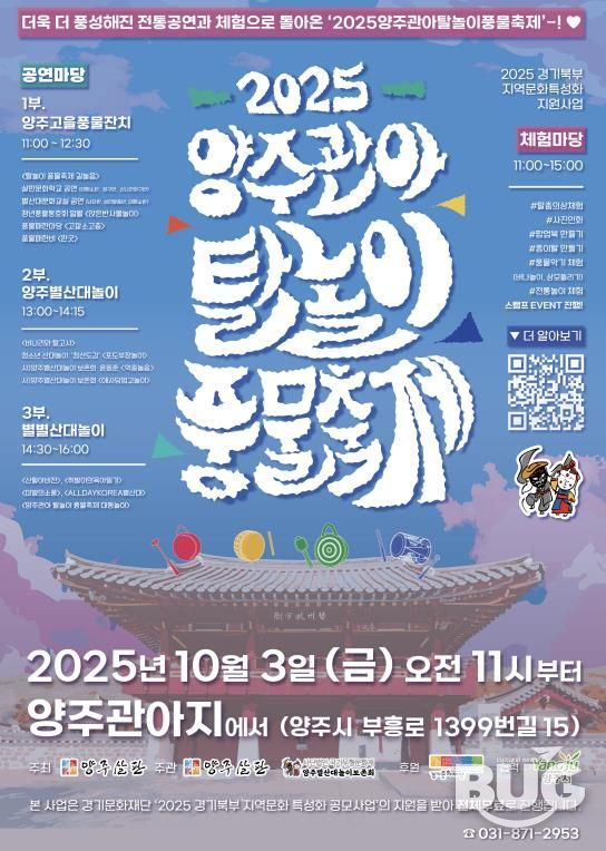 양주살판과 (사)양주별산대놀이보존회가 공동 기획한 이번 축제는 역사적 장소인 양주관아지를 스토리텔링 방식으로 재해석해 지역의 문화적 상징성을 강화하고, 전통과 창작이 어우러진 새로운 지역문화 모델을 선보인다.