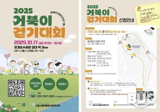 걷기대회는 은계호수공원 3km 구간을 완주하면 메달과 기념품이 주어지며, 코스 중간에는 장애 인식 퀴즈와 포토존 등 다양한 이벤트가 마련된다. 또한, 장애인복지시설이 운영하는 체험 부스도 준비돼 참가자들에게 즐길 거리를 제공한다. 대회 종료 후에는 ‘너ㆍ나ㆍ우리 페스티벌’을 통해 공연과 교류의 시간을 갖고, 장애와 비장애의 경계를 넘어서는 화합의 장을 이어간다.