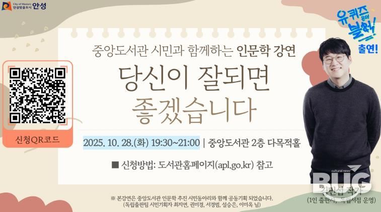 부울경문화뉴스 관리자 기자 | 안성시는 오는 10월 28일 저녁 7시 30분, 중앙도서관 다목적홀에서 정미소출판사 대표이자 『당신이 잘되면 좋겠습니다』의 저자 김민섭 작가를 초청해 시민 강연회를 개최한다.