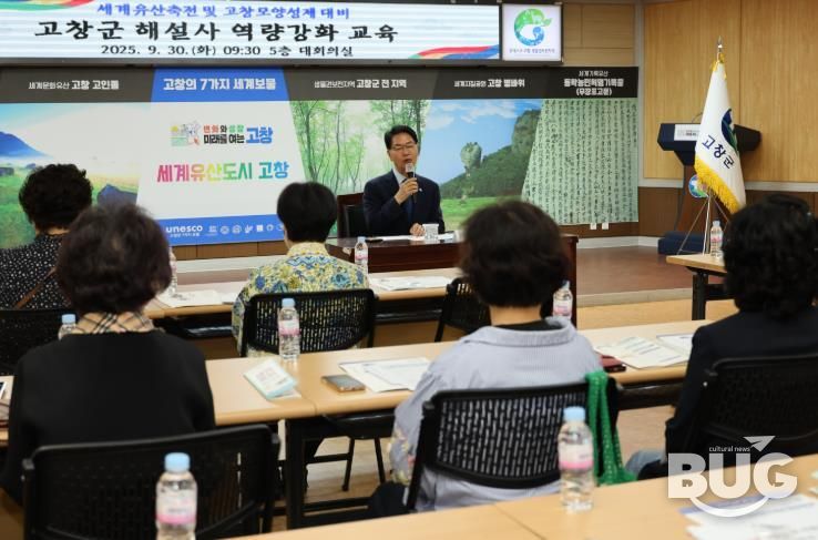 부울경문화뉴스 관리자 기자 | 고창군이 30일 군청 5층 회의실에서 ‘2025 세계유산축전(10월2~22일)’과 ‘제52회 고창모양성제(10월29일~11월2일)’를 앞두고 해설사 친절교육을 실시했다.