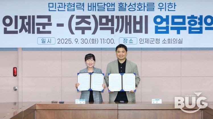 부울경문화뉴스 관리자 기자 | 인제군은 9월 30일 군청 소회의실에서 민관협력 배달앱 ‘먹깨비’ 운영사와 업무 협약을 체결하고, 지역 소상공인 경영 안정과 군민 편익 증진을 위한 본격적인 협력에 나섰다.