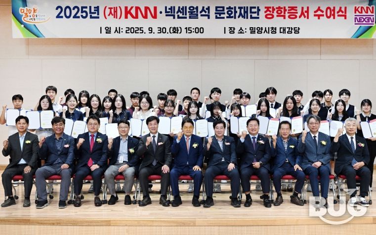 부울경문화뉴스 관리자 기자 | 경남 밀양시는 30일 시청 대강당에서 (재)KNN문화재단·(재)넥센월석문화재단(이사장 강병중) 장학증서 수여식을 개최했다고 밝혔다.