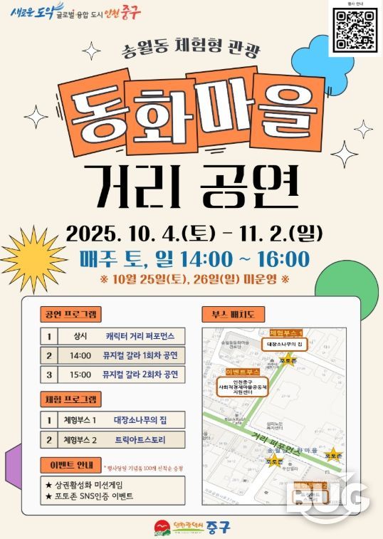 김정헌 구청장은 “송월동 동화마을은 중구의 대표 관광 명소이자, 주민과 관광객 모두에게 사랑받는 소중한 공간”이라며, “이번 프로그램을 계기로 더 많은 관광객이 찾아와 즐거운 추억을 만들고, 동시에 지역 상권에도 활기가 돌 수 있도록 앞으로도 다양한 관광 콘텐츠를 마련해 나가겠다”라고 밝혔다.