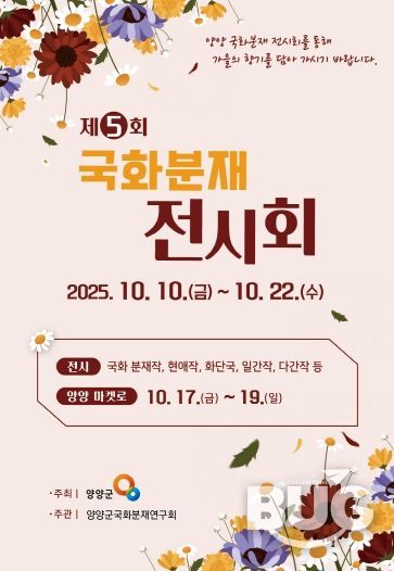 부울경문화뉴스 관리자 기자 | 양양군 국화분재연구회(회장 윤종욱)는 오는 10일부터 22일까지 13일간 양양군농업기술센터에서 ’제5회 국화분재 전시회‘를 개최한다.