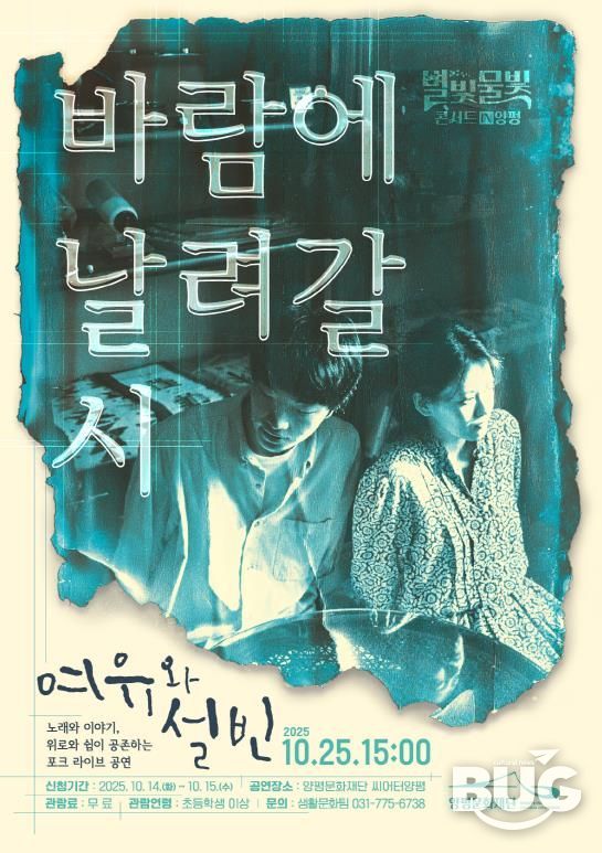 부울경문화뉴스 관리자 기자 | 양평문화재단은 오는 10월 25일 오후 3시, 양평문화재단 2층 씨어터양평에서 ‘별빛물빛 콘서트 in 양평’ 10월 정기 공연으로 인디 듀오 여유와 설빈의 '바람에 날려갈 시'를 선보인다.