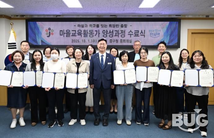 부울경문화뉴스 관리자 기자 | 대전 중구는 1일 중구청 중회의실에서 행복이음교육지구 사업으로 추진한 ‘2025년 중구 마을교육활동가 양성과정’을 마무리하고 수료식을 개최했다고 밝혔다.