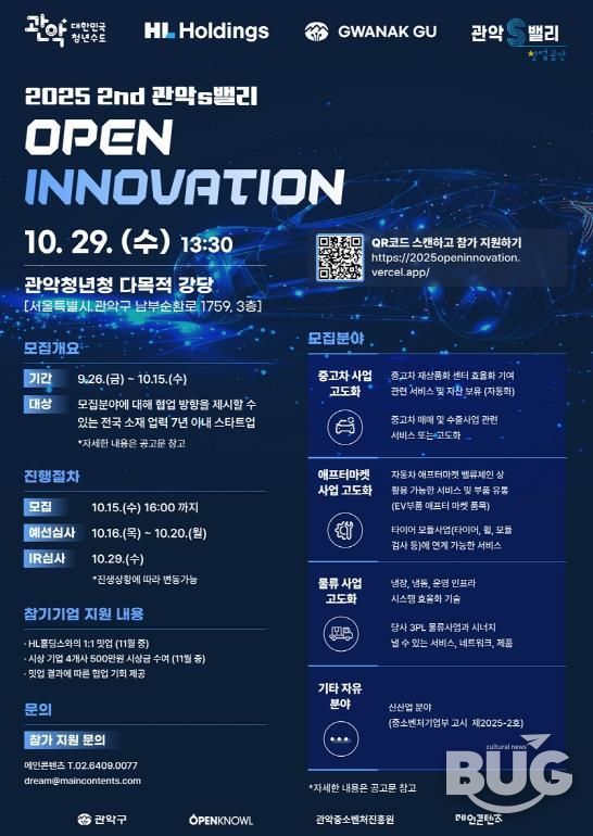 부울경문화뉴스 관리자 기자 | 관악구가 자동차, 물류 분야 글로벌 네트워크를 보유한 ‘HL홀딩스’와 함께 ‘2025 제2회 관악S밸리 오픈 이노베이션’에 참가할 기업을 모집한다.
