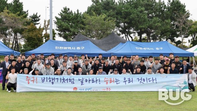 부울경문화뉴스 관리자 기자 | 김정헌 인천 중구청장이 지난달 30일 인천환경공단 송도스포츠파크에서 열린 ‘인천광역시 환경공무관 노조 창립 기념 체육대회’에 함께해 환경 현장에서 묵묵히 봉사하는 환경공무관들을 응원했다.