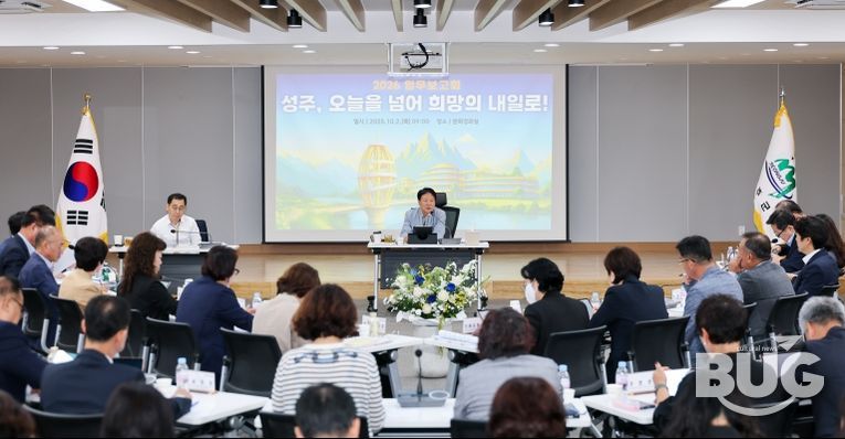 부울경문화뉴스 관리자 기자 | 성주군은 10월 2일 군청 문화강좌실에서 팀장급 이상 간부 공무원이 참석한 가운데‘2026 업무보고회’를 개최하고, 민선8기 마지막 해의 군정 운영 방향과 주요 과제를 점검했다.