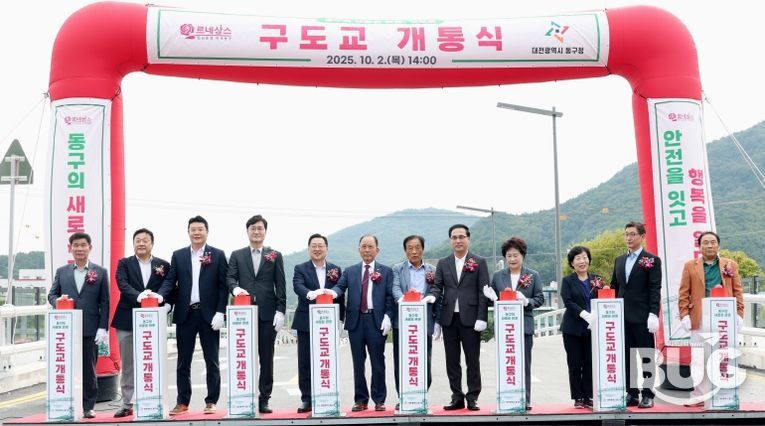 이날 개통식에는 박희조 동구청장, 오관영 동구의회의장, 이장우 대전시장을 비롯한 주요 내빈과 지역 기관·단체장, 주민 등 200여 명이 참석해 새롭게 단장한 구도교의 개통을 함께 축하했다.