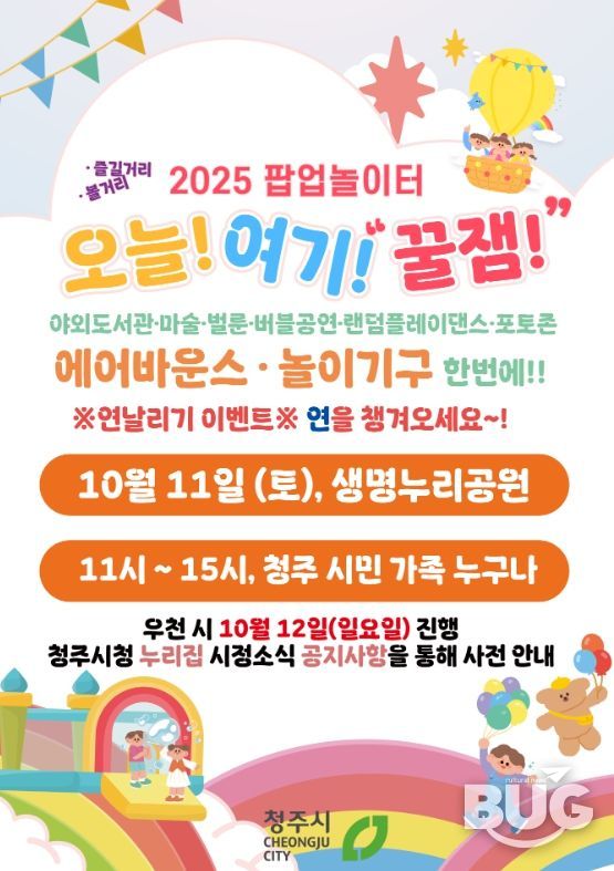 한편 시는 올해 △10월 18일 유기농복합단지 △10월 25일 무심천체육공원 △11월 1일 문암생태공원 등에서 세 차례의 팝업 놀이터를 추가로 운영할 계획이다.