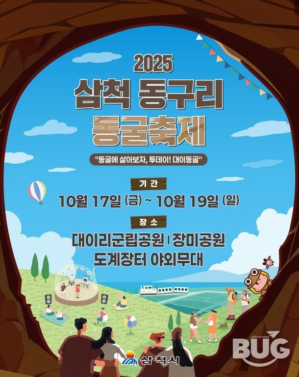 부울경문화뉴스 관리자 기자 | 삼척 동구리 동굴축제가 10월 17~19일 대이리군립공원(대이동굴)·삼척장미공원·도계장터 야외무대에서 동시에 열린다. ‘동굴에 살아보자, 투데이! 대이동굴’을 슬로건으로 한 올해 축제는 가족 공연과 실감형 동굴체험, 도심·생활권 무대를 셔틀망으로 연결하는 분산형 운영으로 하루 동선을 완성했다.