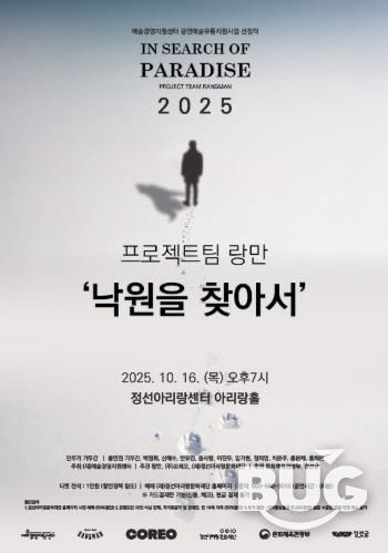 부울경문화뉴스 관리자 기자 | (재)정선아리랑문화재단은 (재)예술경영지원센터의 ’2025 공연예술 지역 유통지원 사업‘을 통해 선정된 작품 중 마지막인 무용극 ’낙원을 찾아서‘를 오는 10월 16일 19시에 올릴 예정이다.