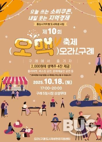 부울경문화뉴스 관리자 기자 | 전남 구례군은 오는 10월 18일 오후 5시부터 8시까지 구례읍 5일시장 상설무대 일원에서 '제10회 오맥축제 오라! 구례, 구례에서 즐기자'를 개최한다고 밝혔다.