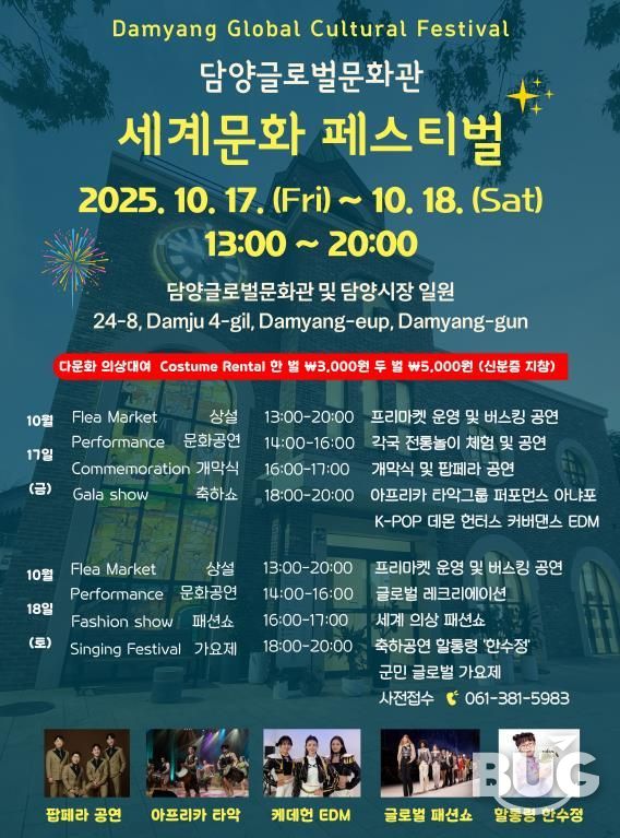 부울경문화뉴스 관리자 기자 | 담양군은 오는 17일부터 이틀간 담양글로벌문화관과 담양오일시장 일원에서 ‘세계문화페스티벌’을 연다고 밝혔다.