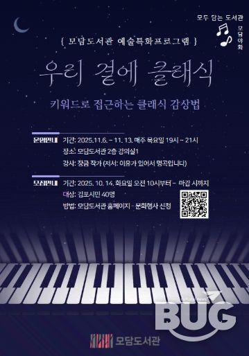 부울경문화뉴스 관리자 기자 | 김포시 모담도서관은 클래식을 주제로 11월 6일부터 13일까지 매주 목요일 오후 7시부터 9시까지 특별 강연을 운영한다.