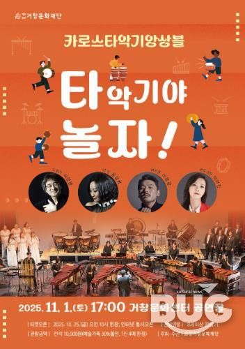 부울경문화뉴스 관리자 기자 | (재)거창문화재단은 오는 11월 1일 토요일 오후 5시 거창문화센터 공연장에서 카로스 타악기 앙상블과 함께하는'타악기야 놀자!'를 개최한다.