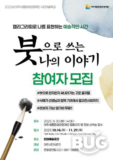 부울경문화뉴스 관리자 기자 | 여주세종문화관광재단은 오는 10월 16일부터 두달간 여주시민을 위한 문화예술교육 프로그램인 시민예술학교 '붓으로 쓰는 나의 이야기'를 진행한다.