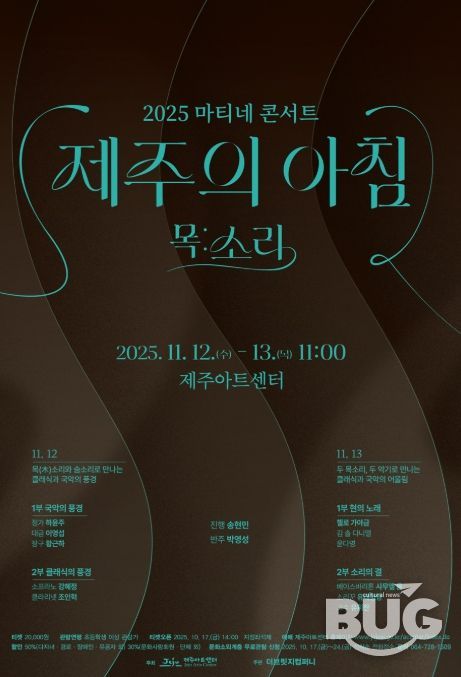 강동철 제주아트센터 소장은 “이번 공연은 클래식과 국악, 동서양 다양한 장르가 친절한 해설과 함께 어우러져 아침의 낭만을 선사할 특별한 무대”라며, “음악으로 여는 하루의 감동을 많은 시민과 함께 나누고 싶다”고 밝혔다.