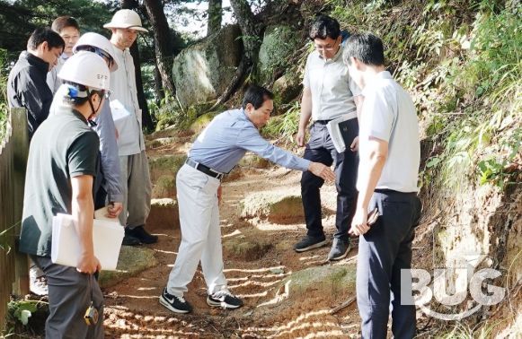 부울경문화뉴스 관리자 기자 | 성낙인 군수가 15일, 창녕읍 옥천리 산 328 일원 관룡사 용선대 탐방로 정비공사 현장을 방문해 전반적인 추진 상황을 점검했다. 이번 정비공사는 데크 보강, 데크 계단 설치, 로프·목재 난간 설치, 자연석 계단 설치 및 정비, 야자매트 설치 등을 통해 탐방로 방문객의 안전성을 강화는 사업으로, 성 군수는 전후 추진 현황 및 탐방로를 꼼꼼히 살폈고 현장 관계자를 격려했다.